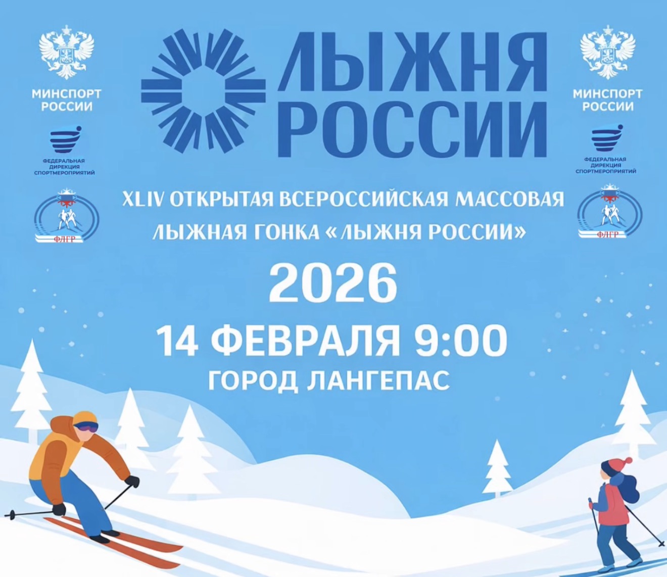 ✨14 февраля в 9:00 стартует ежегодная всероссийская массовая гонка "Лыжня России 2026"!
